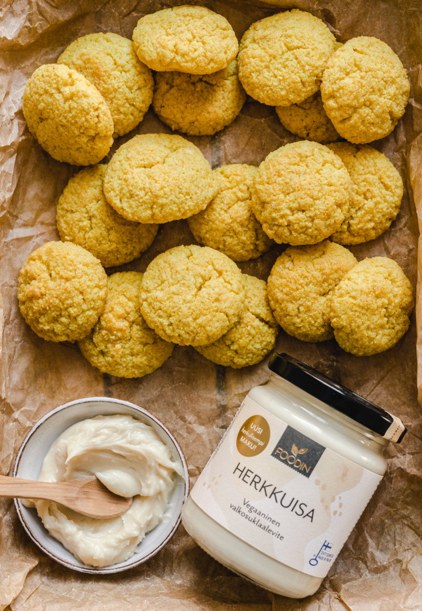 Jos haluat, voit värjätä keksejä hieman keltaisemmaksi: ½ tl Foodin kurkumajauhetta