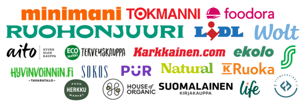 Teemme parhaamme, että tuotteemme olisivat helposti kaikkien saatavilla. Vuosien mittaan hyvää tekevät tuotteemme ovat valloittaneet hyllypaikkoja ympäri Suomen ja tuotteita löytyykin verkkokauppamme lisäksi lukuisista ruokakaupoista sekä erikoismyymälöistä. Kauppojen lisäksi tuotteitamme löytyy monista kahviloista, hotelleista ja huoltoasemilta sekä esimerkiksi Suomalaisesta Kirjakaupasta ja Helsinki-Vantaan lentokentältä. Kotiinkuljetuksena tuotteitamme saa tilattua kätevästi Foodoran, Woltin tai Odan kautta. Jos suosikkituotteitamme ei löydy vielä lähikaupastasi, niin voit auttaa myyntitiimiämme jättämällä tuotetoiveen alta löytyvien linkkien kautta.