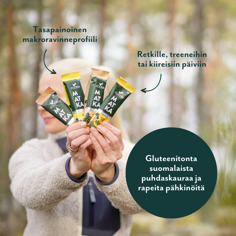 Foodinin valikoimasta löydät koko perheelle herkulliset ja ravitsevat välipalat – ilman mitään ylimääräistä. Yksinkertaiset reseptit, puhtaat raaka-aineet ja aidosti hyvä maku tekevät näistä välipaloista arjen parhaita hetkiä. Tutustu monipuoliseen patukkavalikoimaamme ja tilaa suosikkisi!