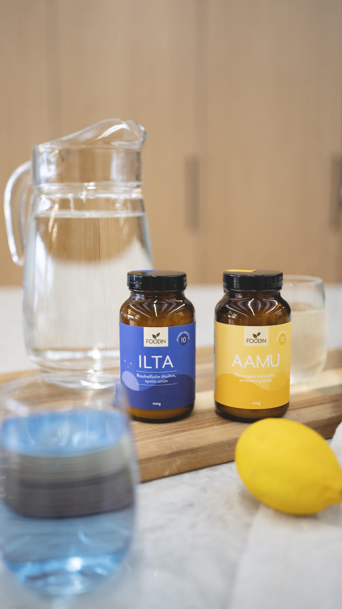 Foodin tuo markkinoille kaksi ainutlaatuista jauhesekoitusta eri vuorokaudenaikojen tarpeisiin. Uniikit, monipuolisia raaka-aineita sisältävät aamu- ja iltavesijauheet ovat erinomainen lisä tasapainoiseen ja monipuoliseen ruokavalioon. Veden sekaan sekoitettavat jauheet ovat helppoja ja yksinkertaisia käyttää.